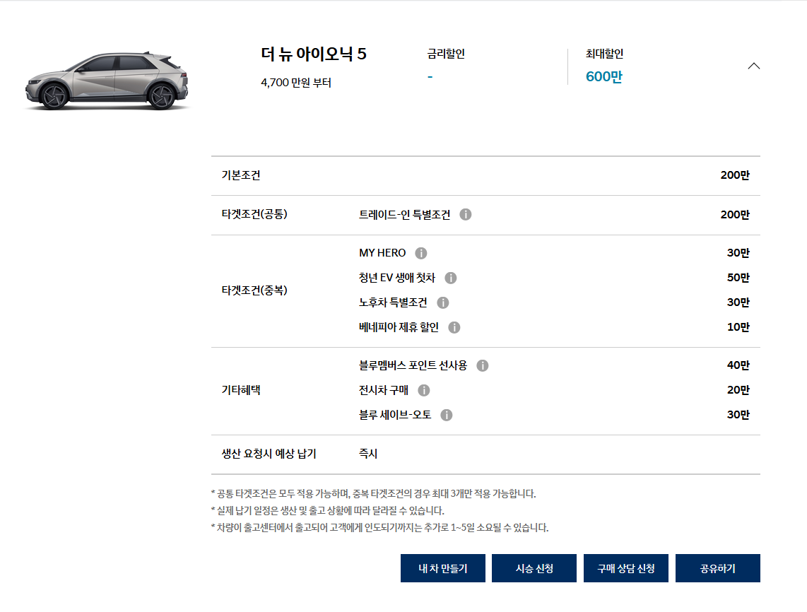 현대자동차는 ‘H-슈퍼 세이브’ 5월 이벤트를 통해 전기차 아이오닉6 구매 시 기본 할인 외에도 다양한 조건별 추가 할인을 제공합니다.