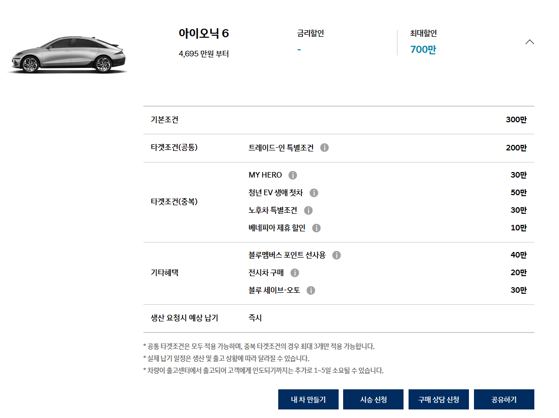 현대자동차는 ‘H-슈퍼 세이브’ 5월 이벤트를 통해 전기차 아이오닉6 구매 시 기본 할인 외에도 다양한 조건별 추가 할인을 제공합니다.